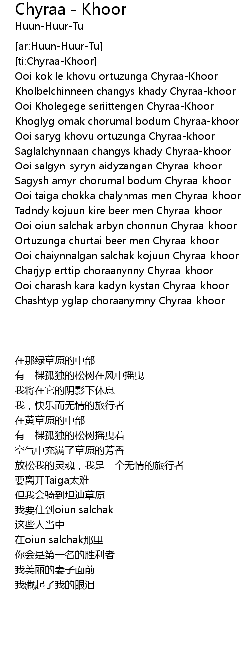 Chiraa Khoor - This song is by huun huur tu and appears on the album ancestors call (2010).