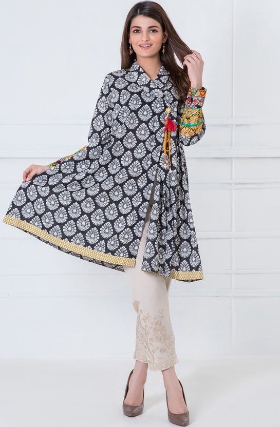 Frocks Style : Gray and pink cotton frock style kurti.