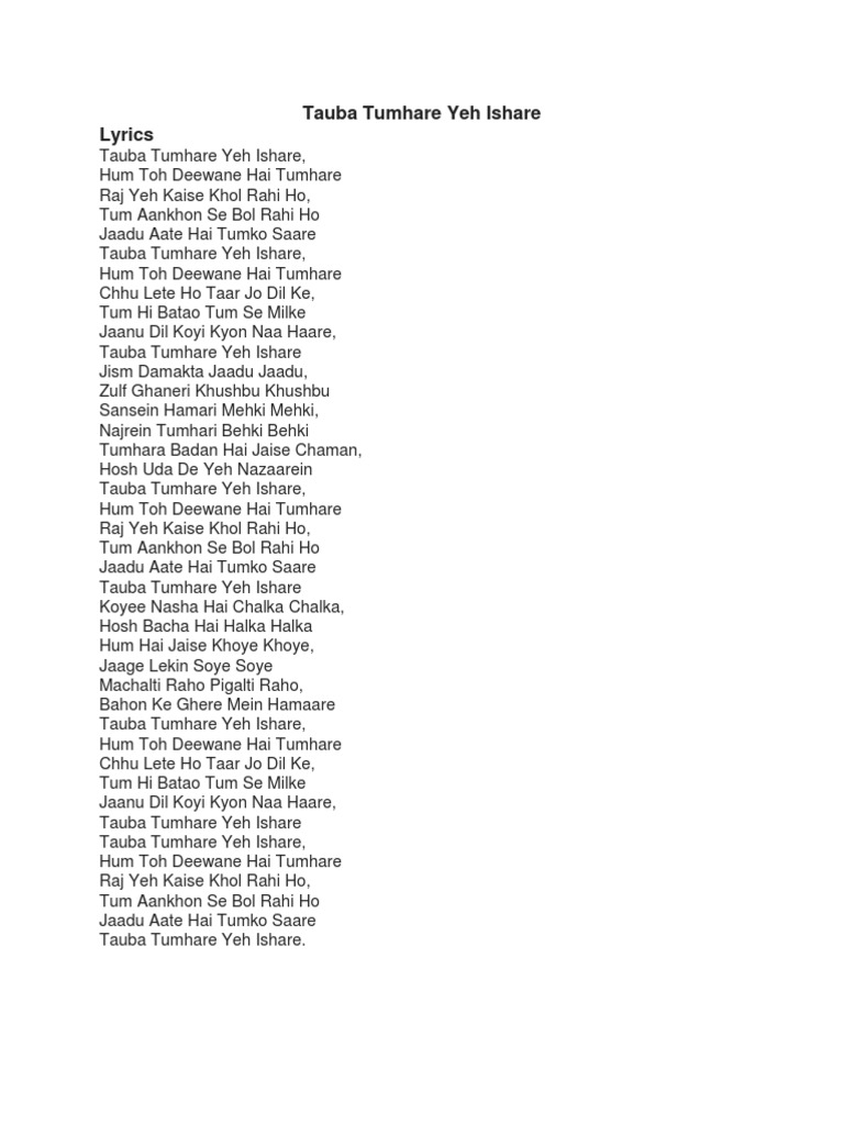 Tauba Tumhare Yeh Ishare Lyrics Tiktok Version Alka Yagnik Abhijeet T Lyrics Youtube Lyrics Songs Singer Please download one of our supported browsers.